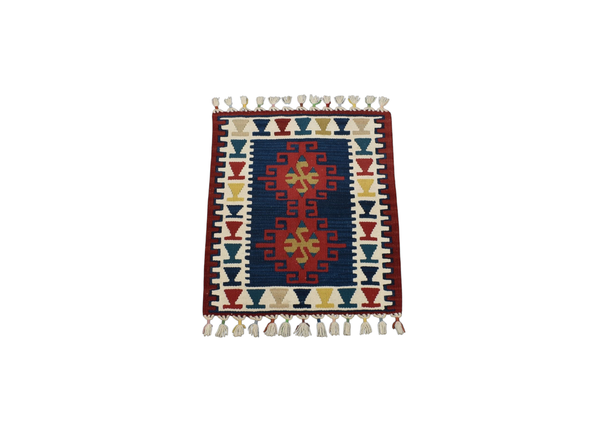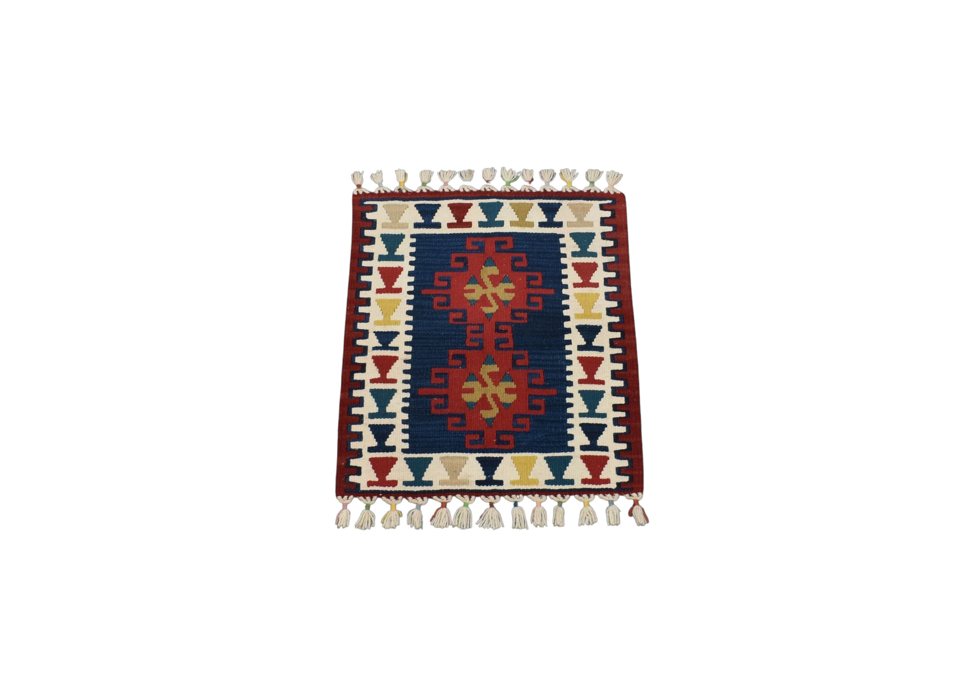 Kilim Antik El Dokuma Kare Köşe Sandalye Minderi Kayseri Yün Kilim 0807 - Yeni - Çok Renkli